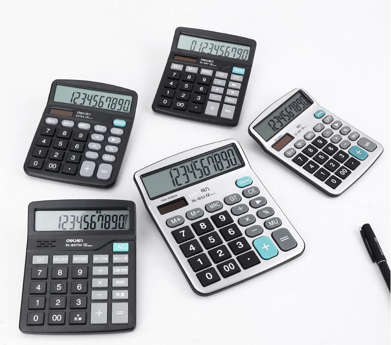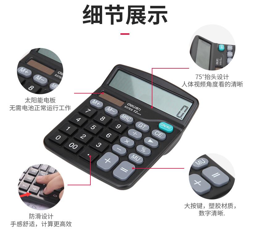得力837計(jì)算器辦公用會(huì)計(jì)專用太陽能學(xué)生用帶語音大學(xué)財(cái)務(wù)小號(hào)便攜雙電源計(jì)算機(jī)器按鍵文具辦公用品大號(hào)